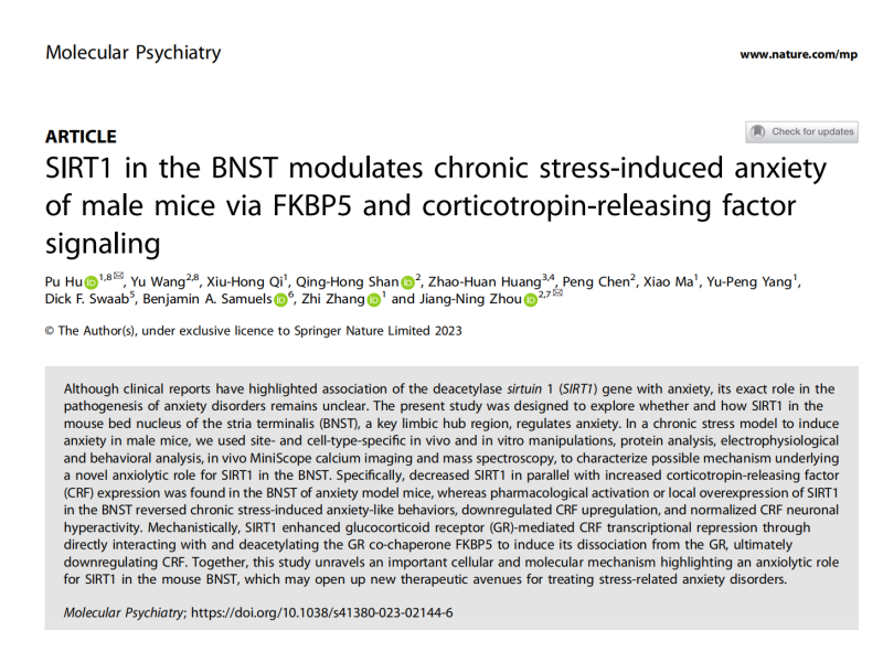 近日,周江寧教授研究團(tuán)隊(duì)在Nature子刊《分子精神病學(xué)》(Molecular Psychiatry...