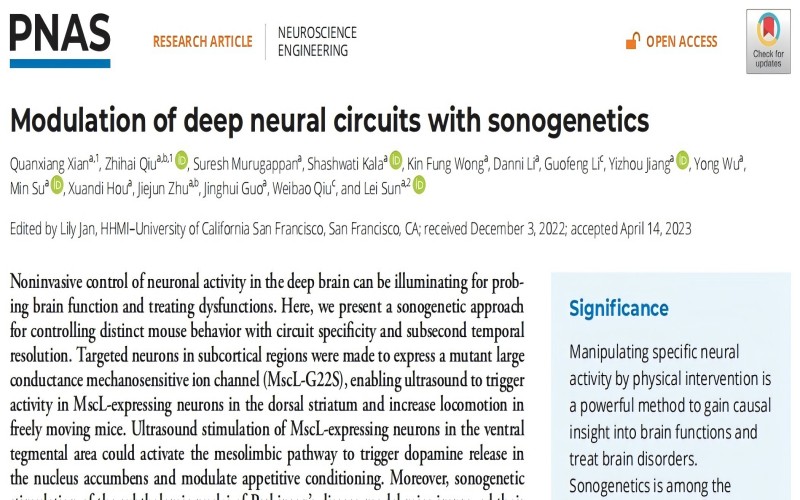 PNAS | 香港理工大學(xué)孫雷教授課題組利用無(wú)創(chuàng)神經(jīng)元類型靶向的超聲遺傳學(xué)方法調(diào)控深部腦區(qū),并有效改善帕金森病小鼠模型的運(yùn)動(dòng)障礙