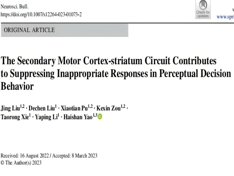 Neuroscience Bulletin:中科院腦智卓越中心姚海珊研究團(tuán)隊(duì)揭示M2-DS通路對(duì)抑制感知決策行為具有重要作用