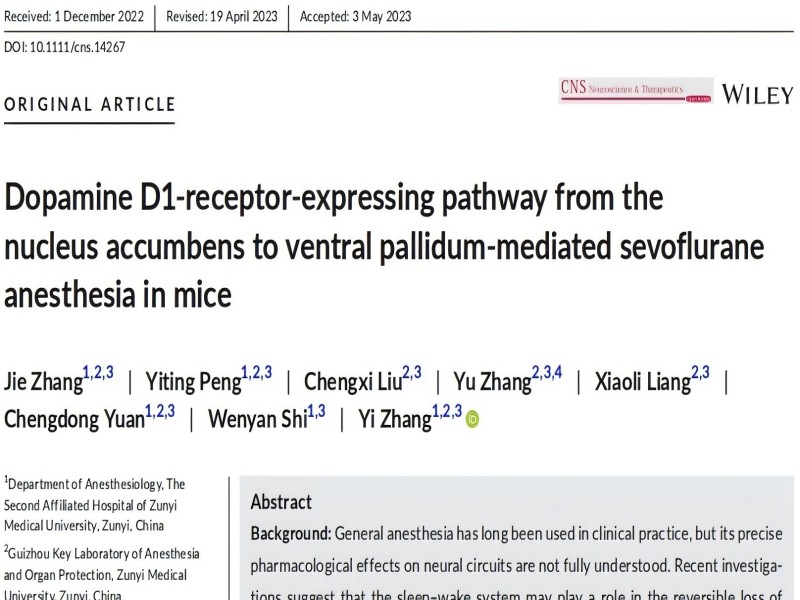 CNS Neurosci Ther | 遵義醫(yī)科大學(xué)張怡發(fā)現(xiàn)七氟烷麻醉覺(jué)醒新途徑
