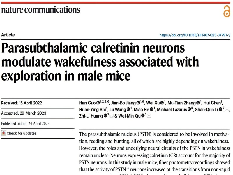 2023年4月24日,復(fù)旦大學(xué)睡眠課題組黃志力團(tuán)隊(duì)在《自然通訊》(Nature Communicat...