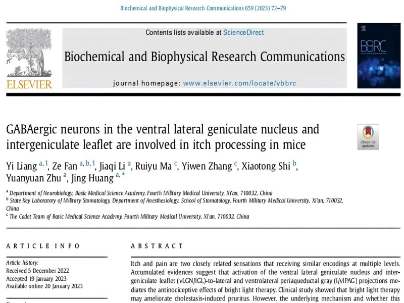 BBRC︱第四軍醫(yī)大學(xué)朱媛媛課題組揭示小鼠vLGN/IGL區(qū)域GABA能神經(jīng)元在瘙癢處理中的關(guān)鍵作用。