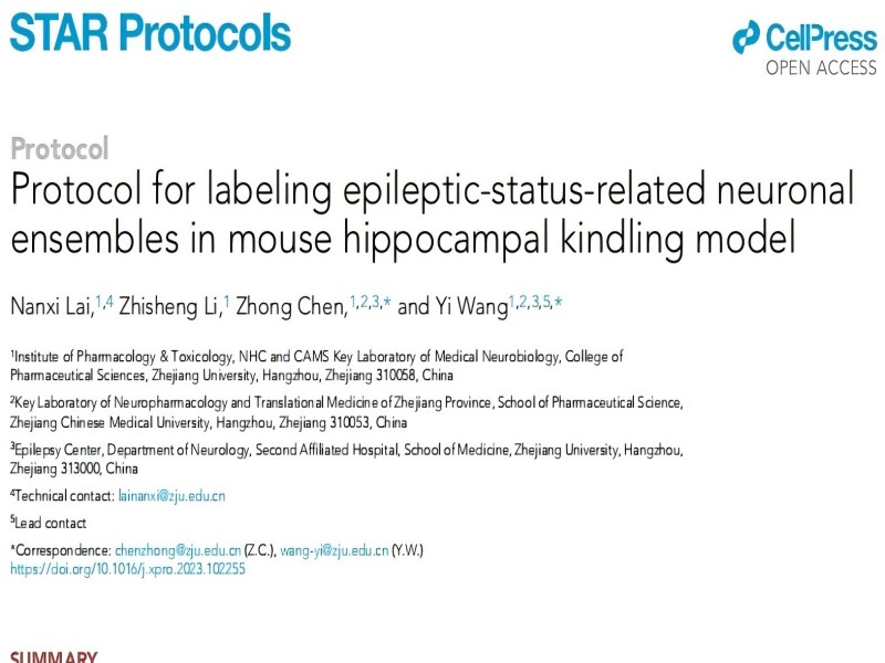 STAR Protocols︱浙江大學(xué)汪儀、陳忠課題組揭示了一種在小鼠海馬點(diǎn)燃模型中標(biāo)記癲癇狀態(tài)相關(guān)神經(jīng)元集合的實(shí)驗(yàn)程序。