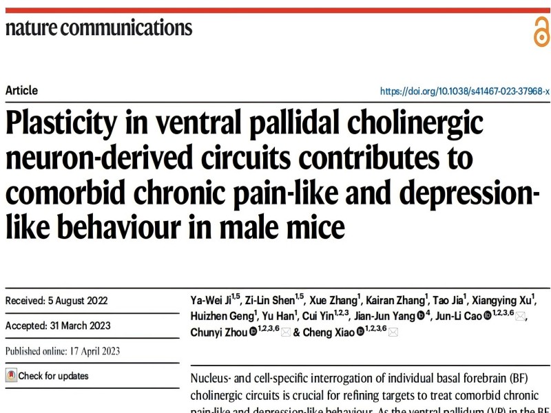 Nat Commun︱徐醫(yī)大肖誠(chéng)/周春藝/曹君利課題組揭示腹側(cè)蒼白球膽堿能神經(jīng)元在慢性疼痛-抑郁共病中的作用