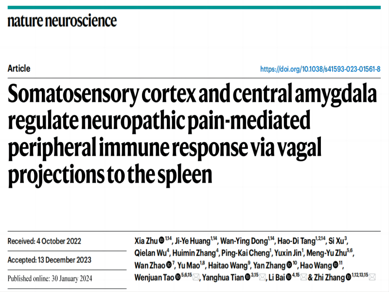 NN:大腦調(diào)控外周免疫新證據(jù)-張智團(tuán)隊(duì)揭示不同脾腦軸環(huán)路調(diào)控疼痛誘發(fā)的脾臟不同免疫反應(yīng)