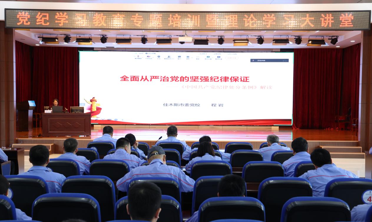 為深入學習貫徹習近平總書記關于開展黨紀學習教育的重要講話和重要指示精神,認真學習貫徹《中國共產黨紀律處分條例》,按照公司黨委工作安排,5月27日,哈電集團佳木斯電機股份有限公司(以下簡稱“佳電股份”)開展黨紀學習教育專題培訓暨理論學習大講堂,邀請佳木斯市委黨校教授程巖以《全面從嚴治黨的堅強紀律保證》為題作專題培訓,佳電股份400余名黨員通過現場或視頻會議方式參加培訓。