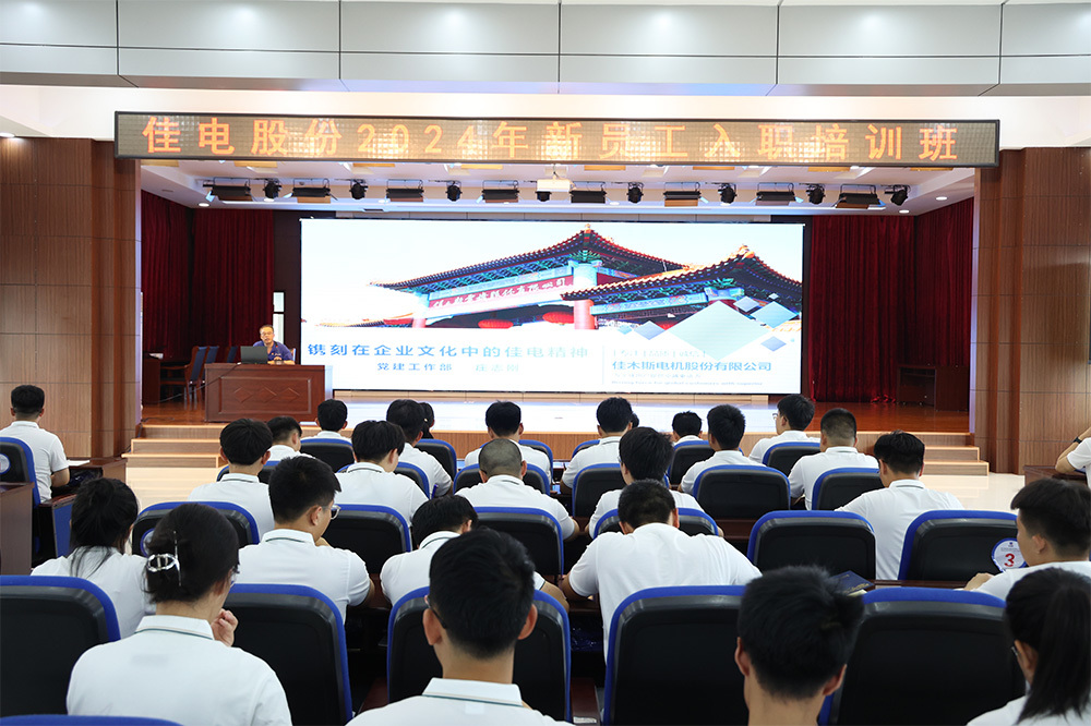 劉漢成代表佳電股份黨委、董事會、總經理部和全體干部職工對新員工的到來表示熱烈歡迎并致歡迎詞,介紹了佳電股份輝煌歷程、經營情況和取得的代表性成就,他強調,佳電股份始終踐行中國特種電機搖籃的使命與責任,積跬步,成千里,向未來,錨定建設世界一流電驅動系統制造和服務企業的發展目標,深耕不輟,篤行如初。