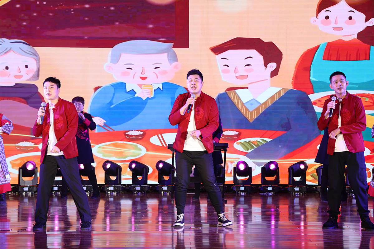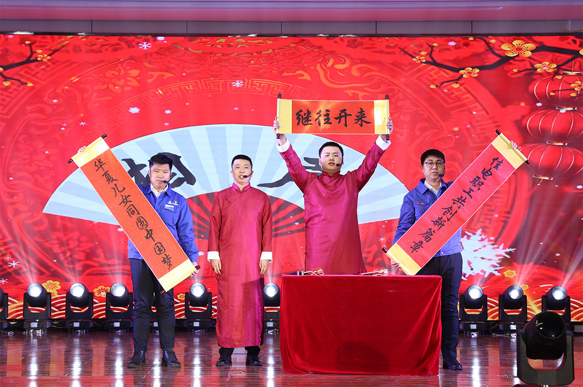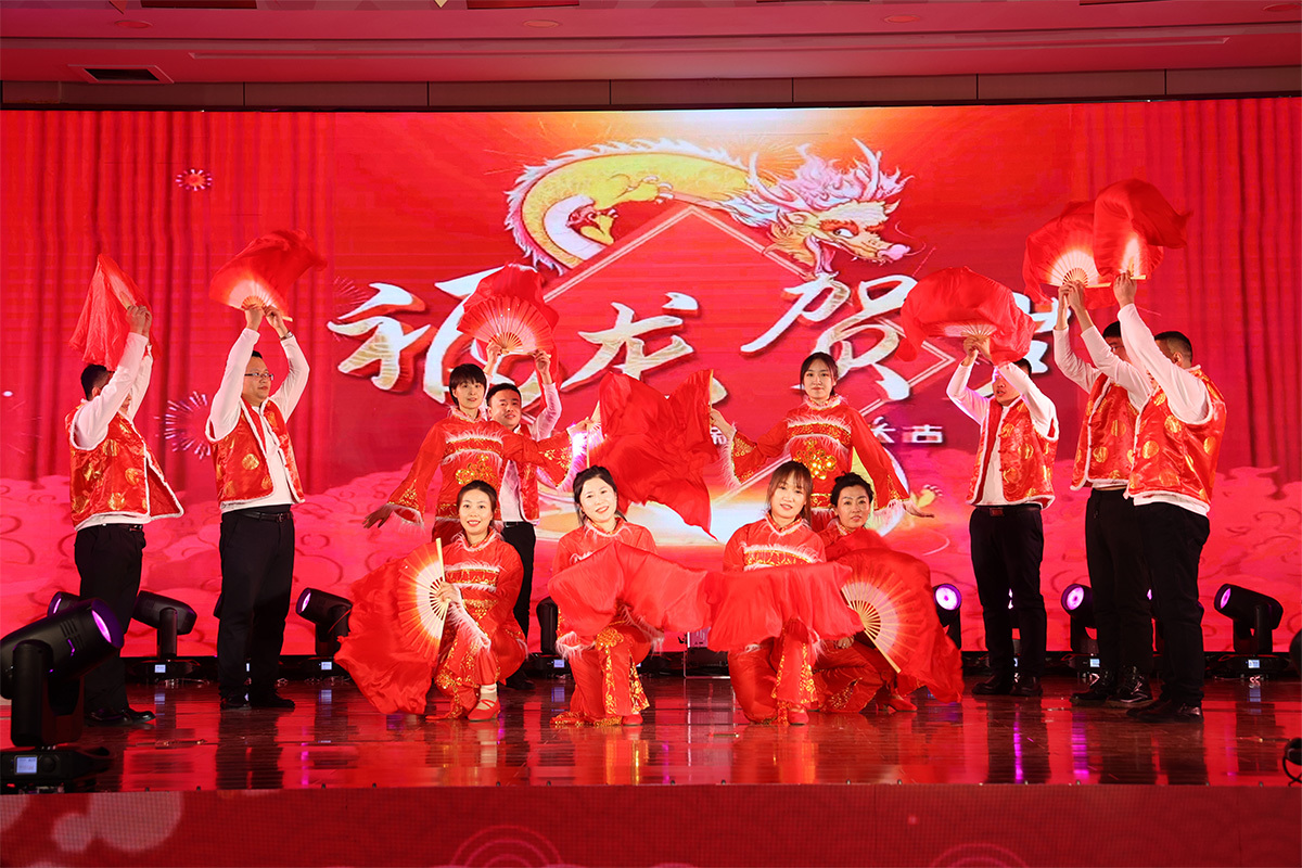 迎新春聯(lián)歡會(huì)共分為“璀璨華夏龍騰盛世、四季福暖共筑和諧、青春激揚(yáng)筑夢(mèng)佳電、砥礪奮進(jìn)開(kāi)拓創(chuàng)新、揚(yáng)帆起航再續(xù)華章”五個(gè)篇章21個(gè)節(jié)目,全部由廣大干部職工自編自導(dǎo)自演,歌曲、相聲、舞蹈、小品、樂(lè)器及朗誦等文藝表演精彩紛呈,讓人目不暇接,在熱烈的開(kāi)場(chǎng)舞《祖國(guó)你好》中拉開(kāi)帷幕,歡樂(lè)的舞蹈表達(dá)了廣大職工對(duì)祖國(guó)的熱愛(ài)和對(duì)企業(yè)發(fā)展的堅(jiān)定信念。