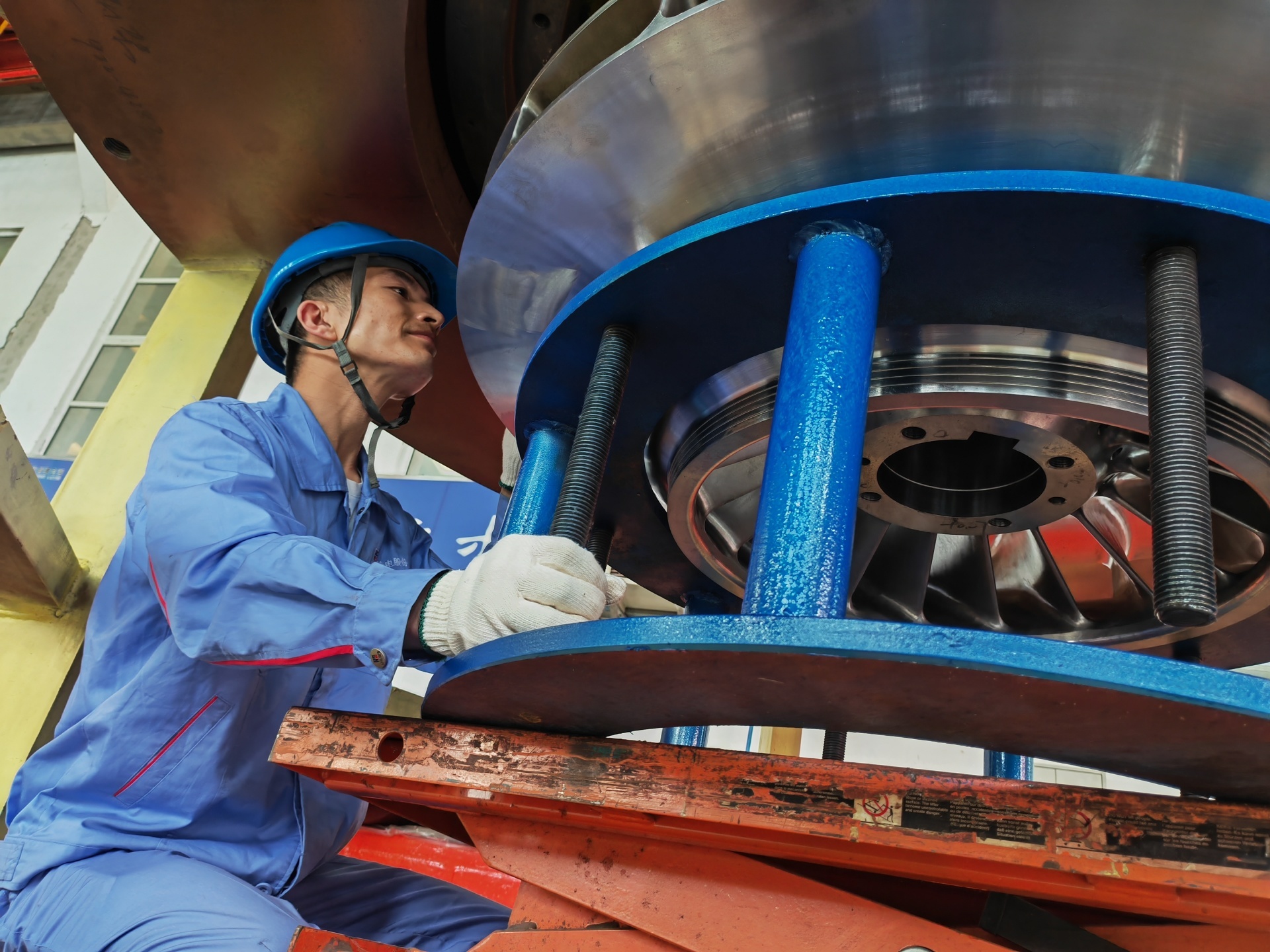 “將產品從試驗臺架吊運下來,依次拆卸導葉、葉輪,再對葉輪平衡孔進行擴孔處理,合成后再重新吊裝在試驗臺架上……”,這就是屏蔽車間裝配班組組長孫立佳這幾天帶領組員一同進行的產品拆裝任務。為了保證重點項目產品試驗的順利進行,不停工、不等待,今年44歲工作經驗豐富的孫立佳帶領班組成員,一日無休、加班加點隨時待命,積極配合試驗臺進行產品軸推力試驗。“能夠參與重點項目的生產任務很幸運,能為產品的順利試驗、按期交付貢獻出一份力量,我們很自豪。”在他的帶領下,班組成員一絲不茍,嚴格按照裝配規范,開展產品拆裝、緊固任務,一天反復拆裝2-3次,有效保證了產品試驗的順利進行。