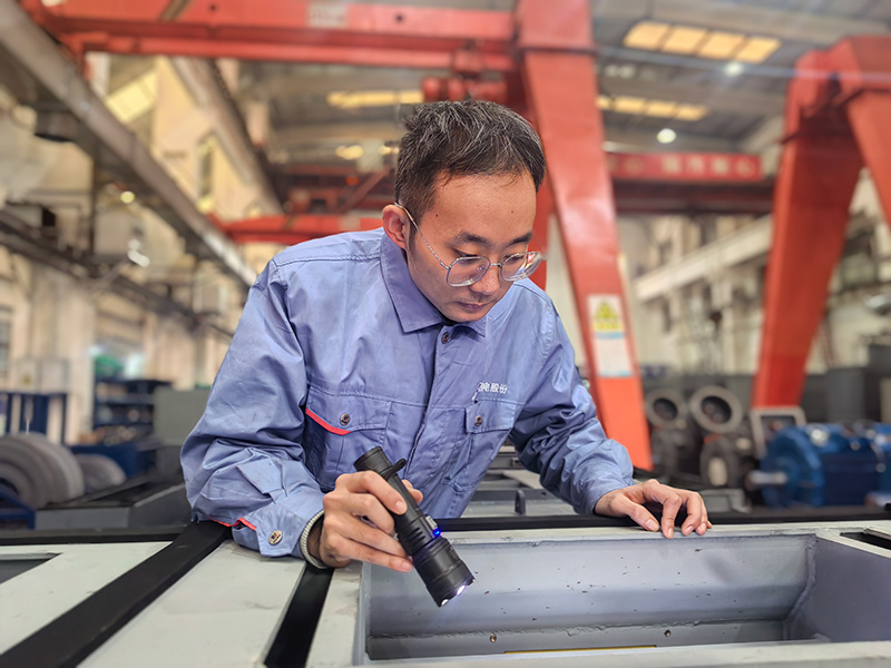 因公司重點產品消氫風機交貨工期緊,加工難度大,屏蔽車間金加工一線操作者金天龍、李紹奎主動堅守崗位,對該項目重要部件機座與轉子進行精加工任務。擁有著10余年豐富經驗的兩人,嚴把精加工質量大關、嚴管生產現場作業安全、嚴控現場加工進度。在國慶期間順利完成了兩臺機座、兩根轉子的精車任務,為后續生產任務奪回先機、搶出優勢。“看著機座兩端精車止口一點點成型、清晰,最后質檢合格,搶出工期,我們的努力與付出都值了。”