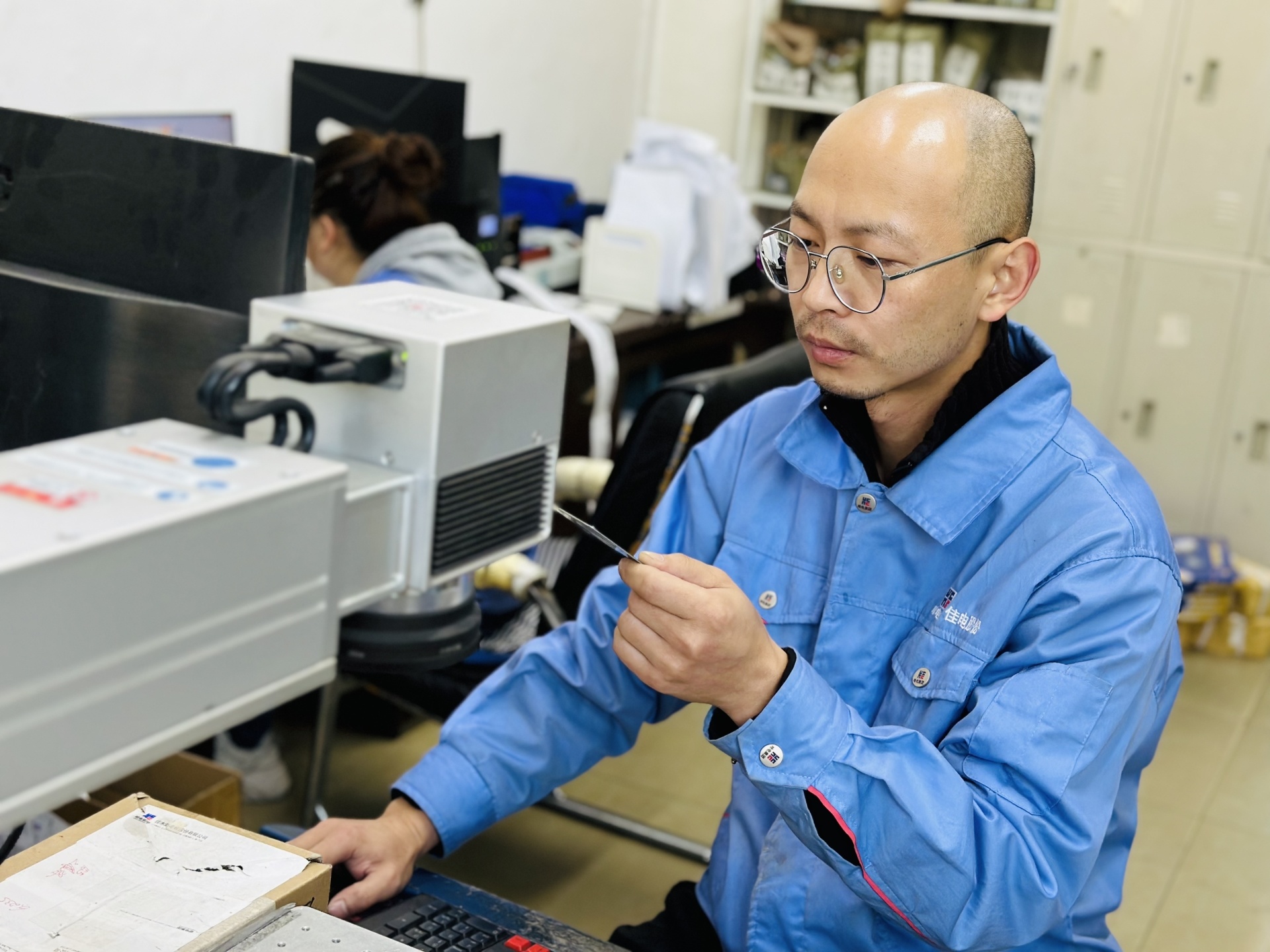 “滋~滋~滋”隨著激光打牌機的運轉,打牌工呂巖開啟了新一天的工作。下預報,查詢通知單,查TC,及時與上一層工序人員溝通、核對數據、打牌、自檢、貼膜、送檢,將合格的銘牌放到電機上。“認真對待每一個環節,踏實做好每一個細節。”這是呂巖的工作態度。隨著產量的增加,應打銘牌的數量也逐漸增加,面對著每天262個工作號的繁重任務,呂巖毫無怨言,而是按部就班認真核對每一個數據,打好每一塊牌,每天工作高達十五小時,即使腰酸背痛也依然堅守在崗位上,順利完成領導交付的高強度工作。