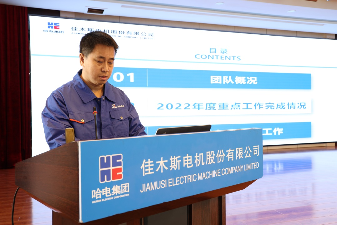 3月11日,哈爾濱電氣集團佳木斯電機股份有限公司(以下簡稱“佳電股份”)隆重召開第七屆科技創(chuàng)新大會,對佳電股份2022年度在科技工作上做出突出貢獻的集體和個人進行了表彰獎勵。獲獎代表對重大科技項目做了情況介紹與經(jīng)驗分享。佳電股份黨委副書記、副董事長、總經(jīng)理姜清海出席會議并講話。佳電股份副總經(jīng)理潘波做年度科技工作報告。佳電股份黨委副書記、工會主席劉漢成主持會議。佳電股份領(lǐng)導(dǎo)、有關(guān)單位中層領(lǐng)導(dǎo)人員及技術(shù)戰(zhàn)線全體科技人員參加會議。
