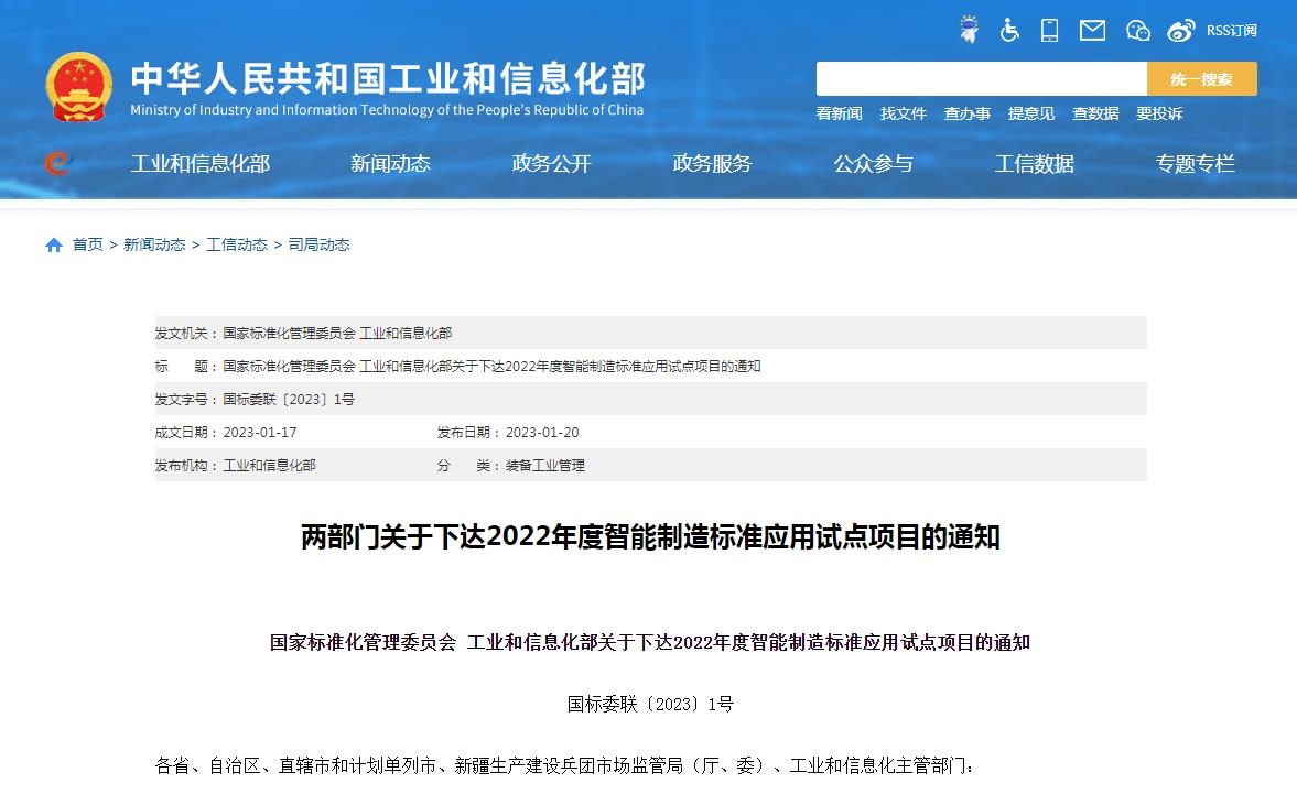 近日,國家標準化管理委員會、工業和信息化部公布了國家智能制造標準應用試點項目名單。