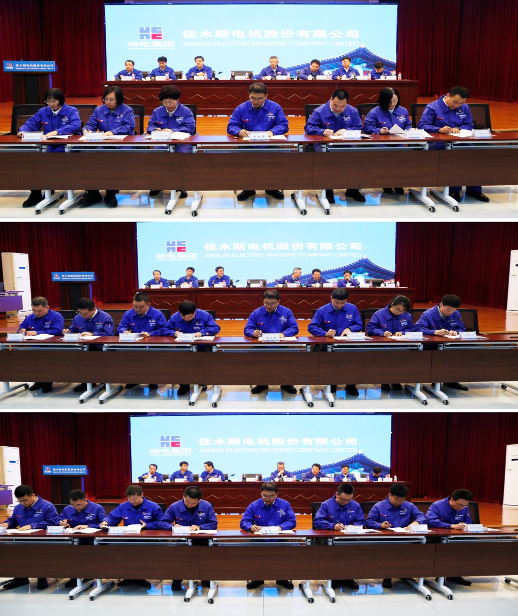 會上,劉清勇同志代表佳電股份黨委與各直屬黨組織、黨建工作部、紀委辦公室簽訂了《2023年度全面從嚴治黨責任書》;姜清海同志代表總經理部與各直屬單位簽訂了《2023年度生產經營目標責任狀》。