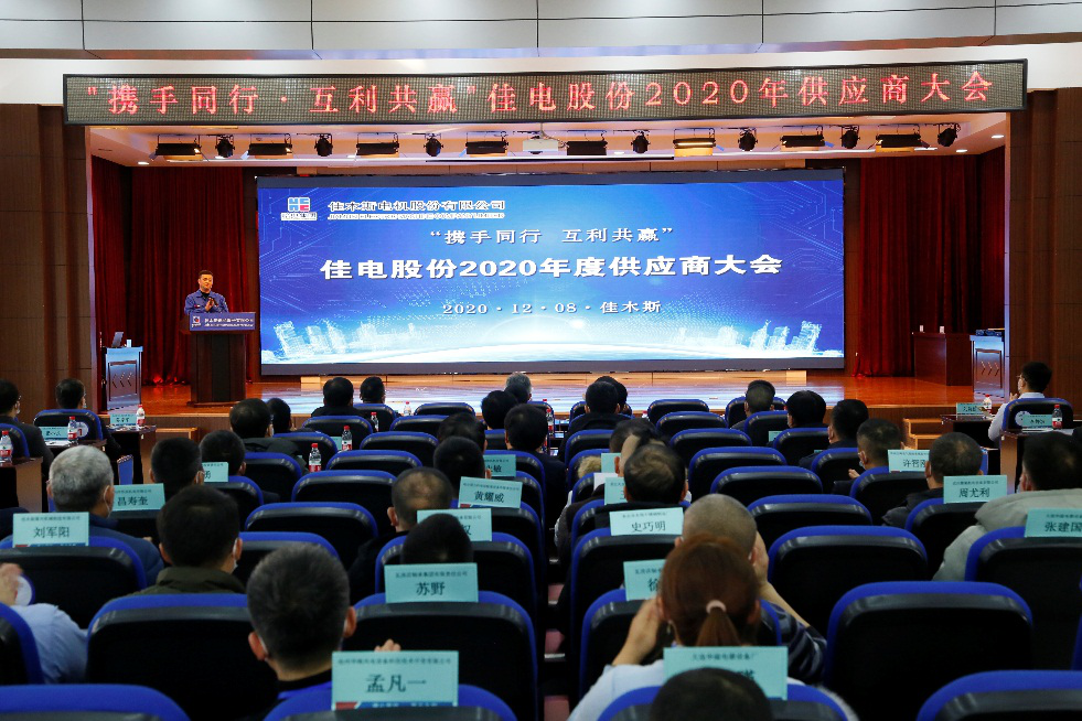 12月8日,佳電股份召開2020年度供應商大會。公司領導班子及相關單位負責人參加會議。100余位來自全國各地的優秀供應商代表出席會議。副總經濟師劉榮貴主持會議。