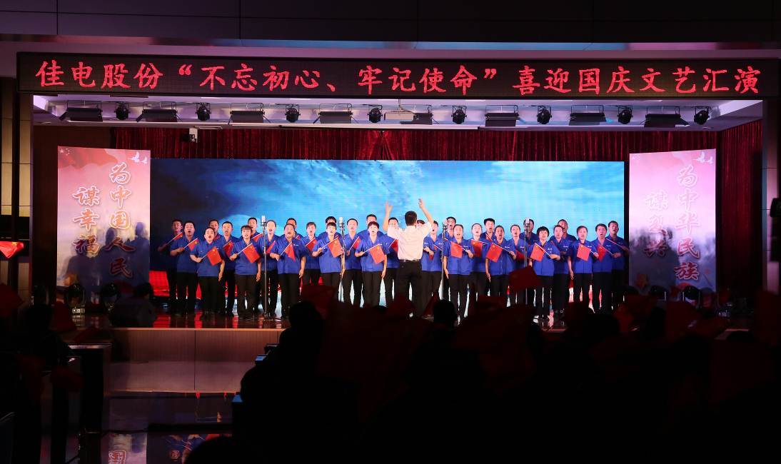 17時,伴隨著《沒有共產黨就沒有新中國》的嘹亮歌聲,佳電股份“不忘初心、牢記使命”喜迎國慶文藝匯演拉開序幕。