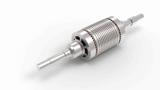 作為國內最大功率2極剛性轉子結構高壓三相異步電動機,轉子結構設計至關重要。通過對轉子沖片、轉子通風槽板、轉子護環等關鍵零部件的強度核算,最終確定了嵌入一體式轉子端部固定結構,通過轉子護環對轉子端環及轉軸的有效固定,徹底解決了傳統結構轉子零部件撕裂問題,轉子整體剛度大幅提升。