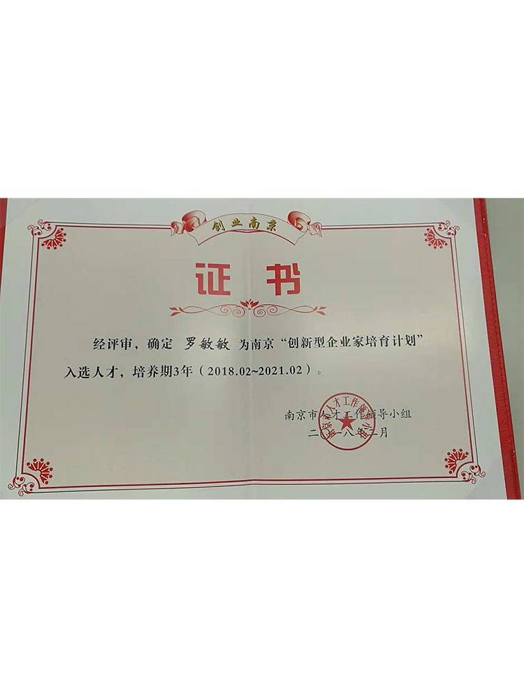 創(chuàng)新型企業(yè)家培育計劃 入選證書